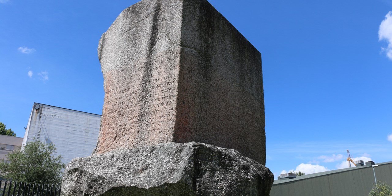 Essa era a envolvência daquela lápide na segunda metade do século XX. A envolvência das suas origens é praticamente impossível de descrever: foi na transição entre os séculos I e II d. C. que aquele monólito granítico tomou aquela forma e recebeu uma das inscrições que hoje ostenta. Datada de 103 ou 104 d. C, essa inscrição em latim é Monumento Nacional desde 16 de junho de 1910, uma das quatro hoje conhecidas no noroeste peninsular como homenagem a Trajano Augusto.