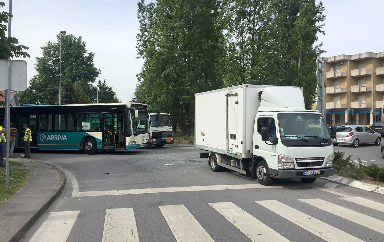 O autocarro seguia no sentido ascendente da Rua Comandante Carvalho Crato e o veículo de mercadorias entrou na rotunda vindo da Escola EB 2,3 das Taipas.