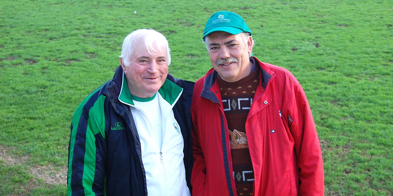 Camilo Baptista Ribeiro, à esquerda na foto, ao lado de um dos seus “companheiros de luta”, José Alberto Teixeira, na liderança da equipa de veteranos do Clube Caçadores das Taipas, foi atleta, treinador e dirigente, tendo mesmo sido presidente, do clube taipense.