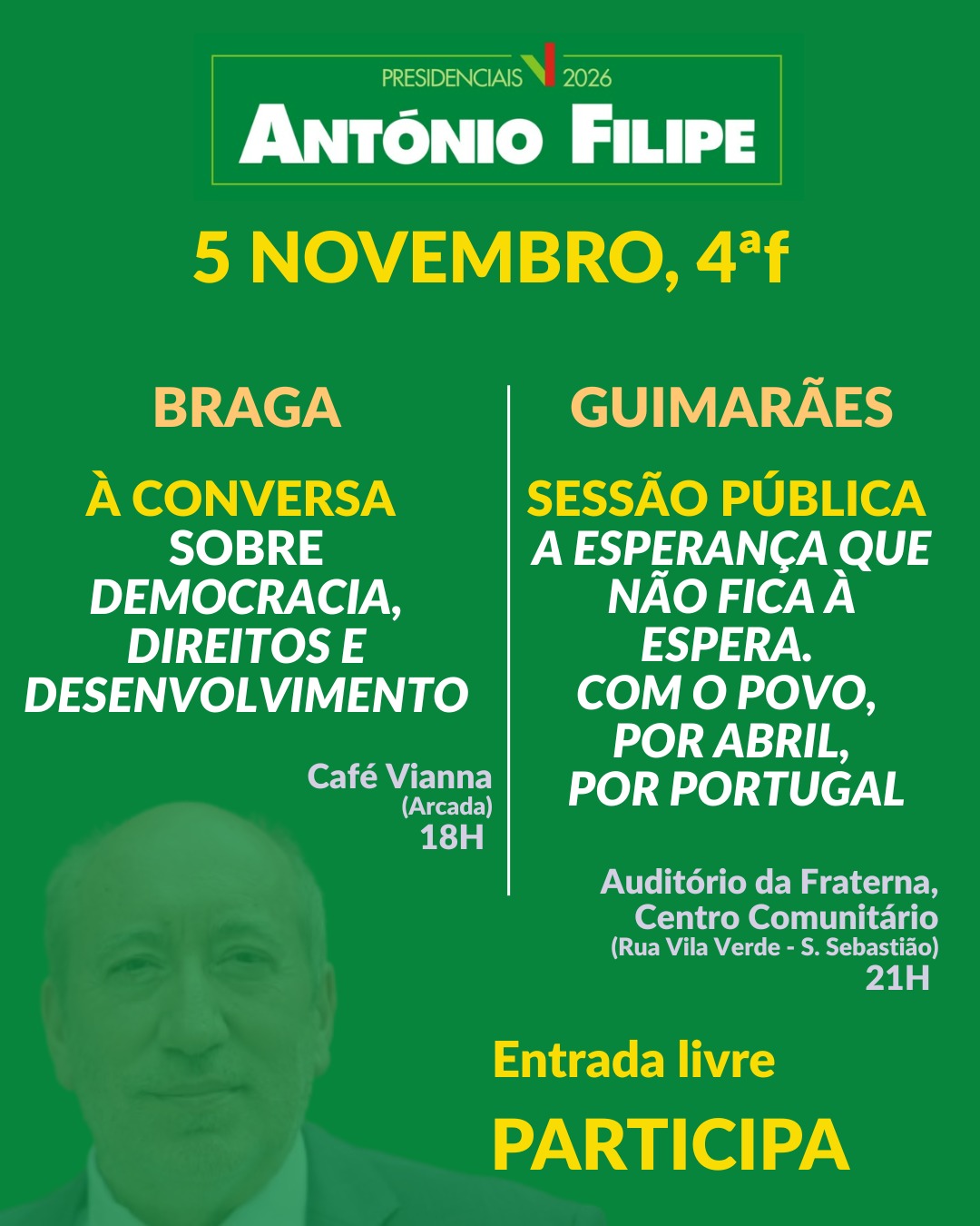 Antes do encontro em Guimarães, António Filipe estará em Braga, pelas 18h, no Café Vianna, onde vai conversar com os cidadãos sobre a democracia, os direitos e o envolvimento cívico.