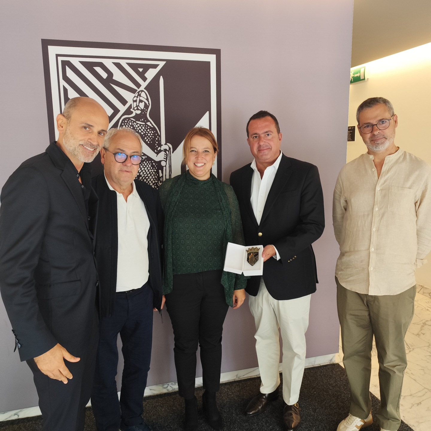 A comitiva da CDU aproveitou para oferecer um emblema do Vitória Sport Clube dos anos 60, em latão esmaltado, para o espólio museológico do Vitória Sport Clube.