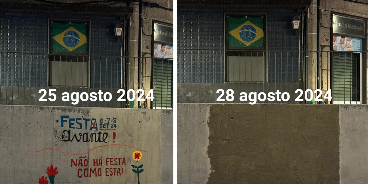 Naquilo que consideram ser a reposição da “normalidade do mural que havia sido pintado a promover o festival do Avante”, a concelhia do CHEGA de Guimarães resolveu apagar a mensagem promocional que desde o passado domingo, dia 25 de agosto, se encontrava visível no muro de betão em pleno centro da vila das Taipas.