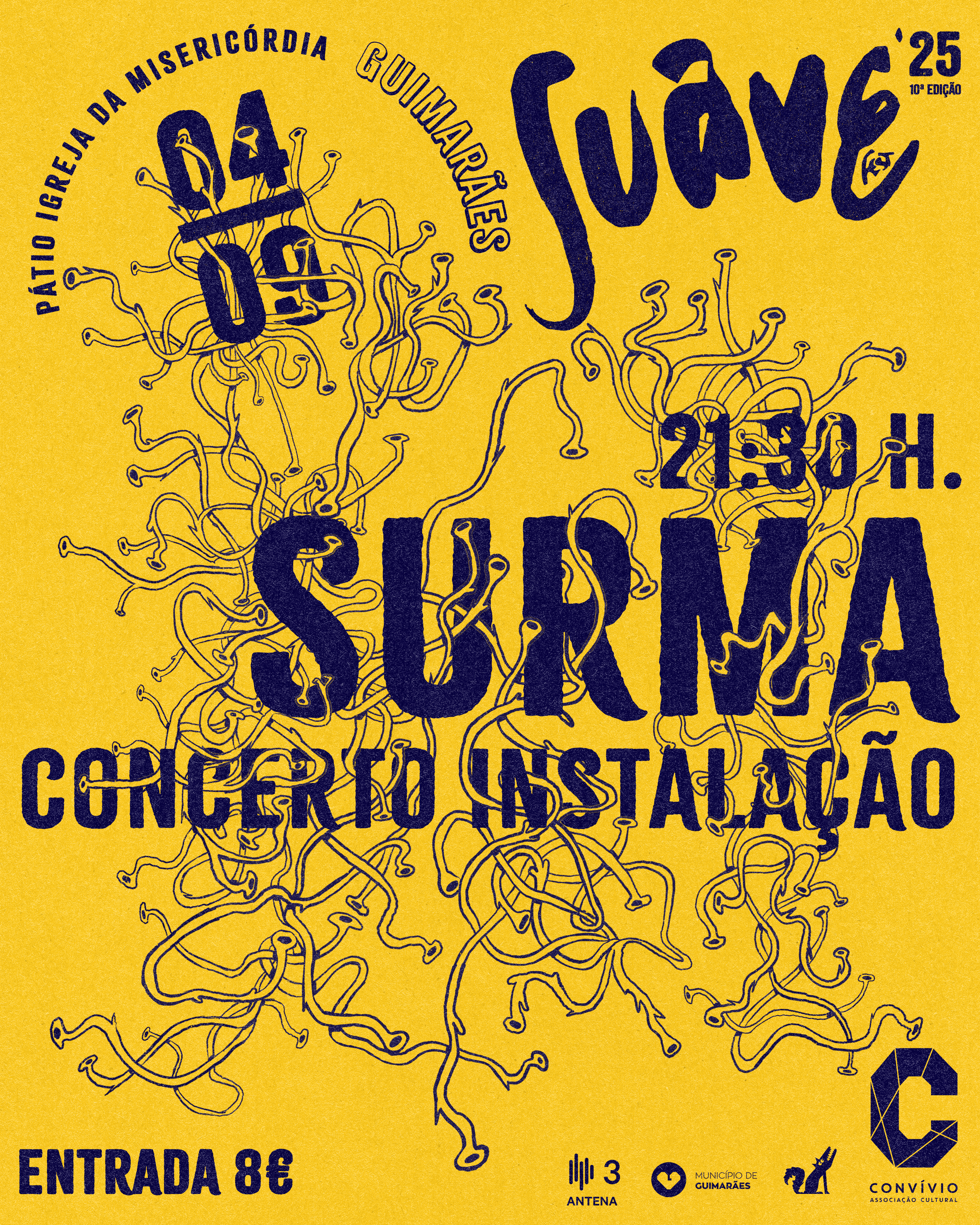 Antes do arranque da 10ª edição do Suave Fest, promovido pelo Convívio Associação Cultural e Recreativa, realiza-se um concerto-instalação de Surma, no dia 4 de setembro, no Pátio da Igreja da Misericórdia, em Guimarães.