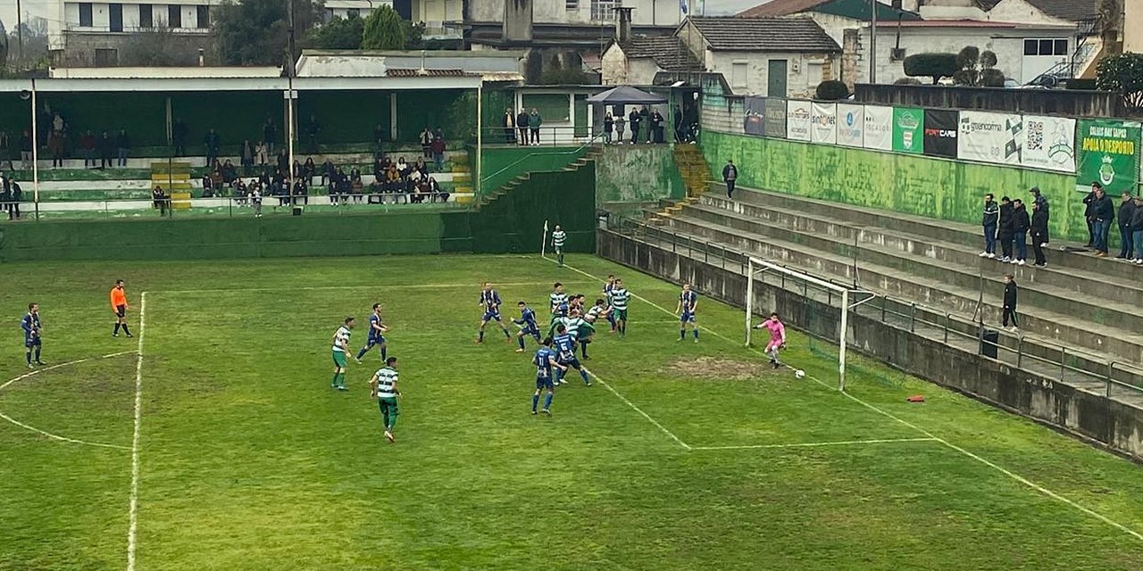 Neste domingo, um cabeceamento certeiro de Diogo, aos 37 minutos, bastou para derrotar o Santo Adrião, em partida que encerrou a jornada 18.
