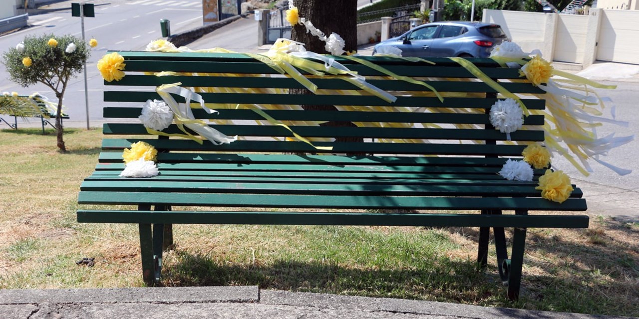Aos pés da Junta de Freguesia de Longos, os bancos de jardim e as árvores ostentam flores brancas e amarelas; o espaço está assim ornado por iniciativa da Braços d’Afetos, que o fez para receber os seus emigrantes. “Além de decorar este jardim, colocámos na rua umas fitas com flores, para que quem chega sinta que faz parte da comunidade de Longos. Eles ficam contentes por não nos esquecermos”, adianta ao Reflexo Cidália Batista, trabalhadora na coletividade de ação social.