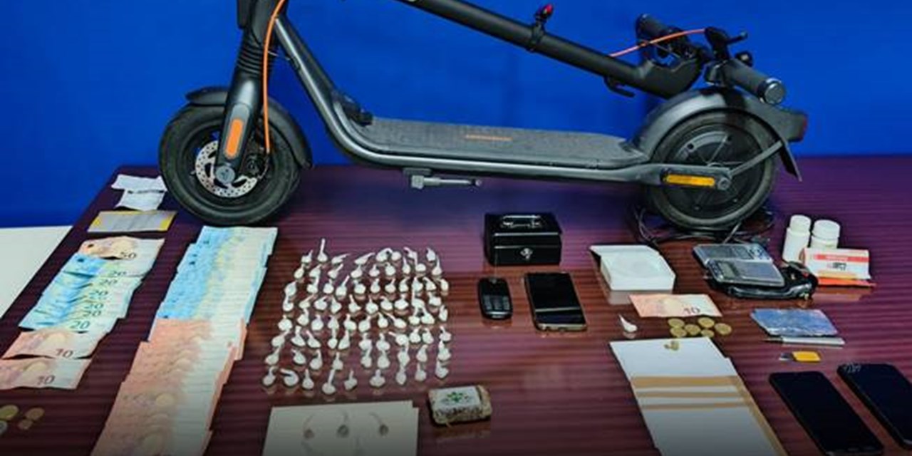 Durante a operação, que incluiu quatro buscas domiciliárias, foram apreendidos diversos produtos e objetos relacionados com a atividade ilícita, nomeadamente:cocaína, haxixe, heroína e liamba, dinheiro, duas viaturas, uma trotinete, telemóveis, balanças de precisão e material usado no acondicionamento das substâncias.