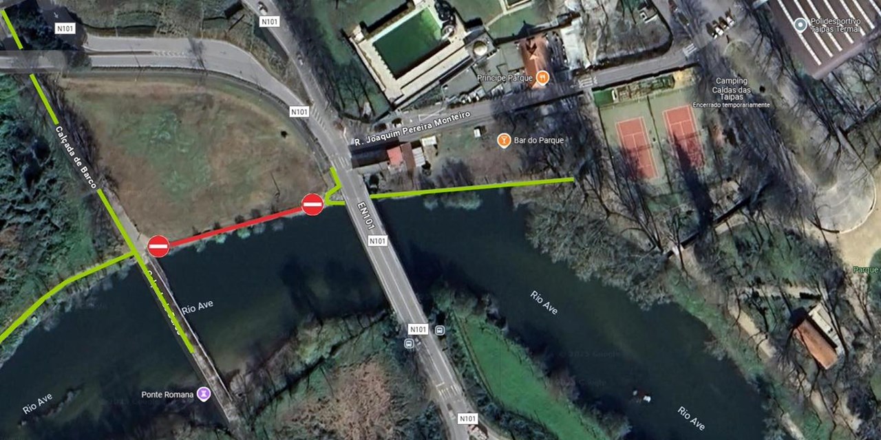 O troço da Ecovia do Ave, entre a ponte rodoviária e a ponte setecentista, estará interdito à circulação nos dias úteis, entre as 8h00 e as 18h00, devido às obras de construção dos muros de pedra e do acesso ao novo parque de lazer das Levadas.