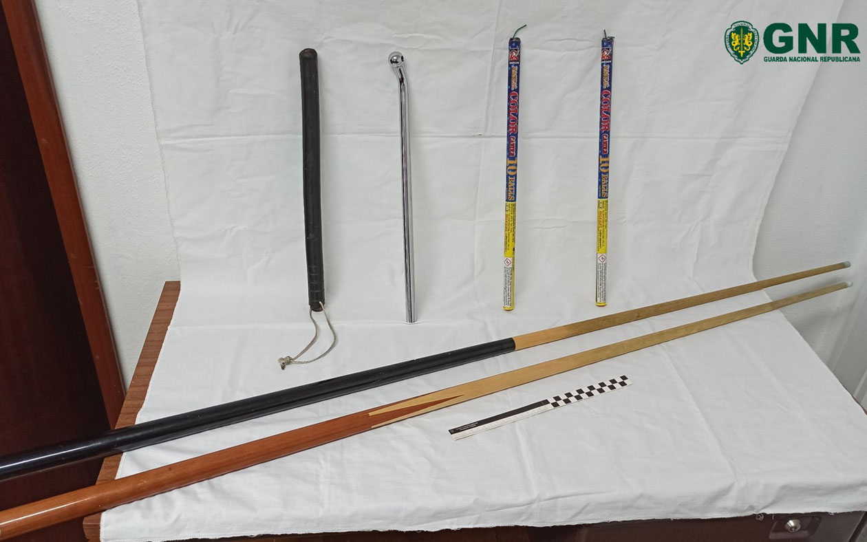 Fruto destes desacatos a GNR deteve dois homens, de 21 e 23 anos de idade, por posse de armas proibidas.