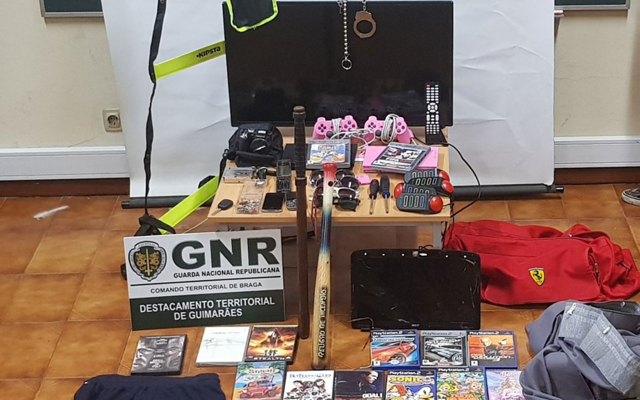 Entre os bens recuperados destacam-se três telemóveis, uma televisão, duas consolas de videojogos, uma máquina fotográfica, uma chave de veículo e um par de algemas. O alegado assaltante, que já tinha antecedentes criminais, foi constituído arguido, sendo que o caso foi remetido para o Tribunal Judicial de Guimarães.