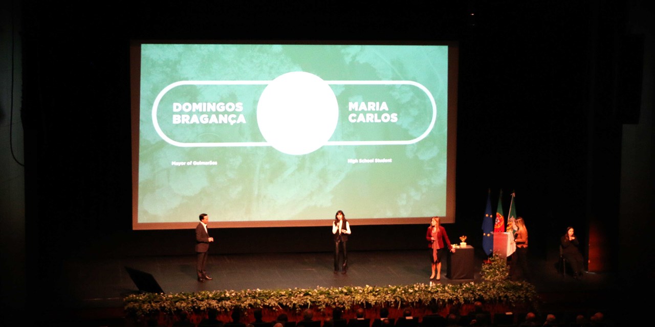 Carlos Ribeiro e Isabel Loureiro, diretor executivo do Laboratório da Paisagem e coordenadora da Estrutura de Missão Guimarães 2030, respetivamente, a par de Dalila Sepúlveda, diretora do Departamento de Ambiente e Sustentabilidade do Município de Guimarães, dividiram depois o palco para apresentar os principais momentos que fizeram parte da estratégia e argumentos que convenceram o júri a atribuir o título de Capital Verde a Guimarães.