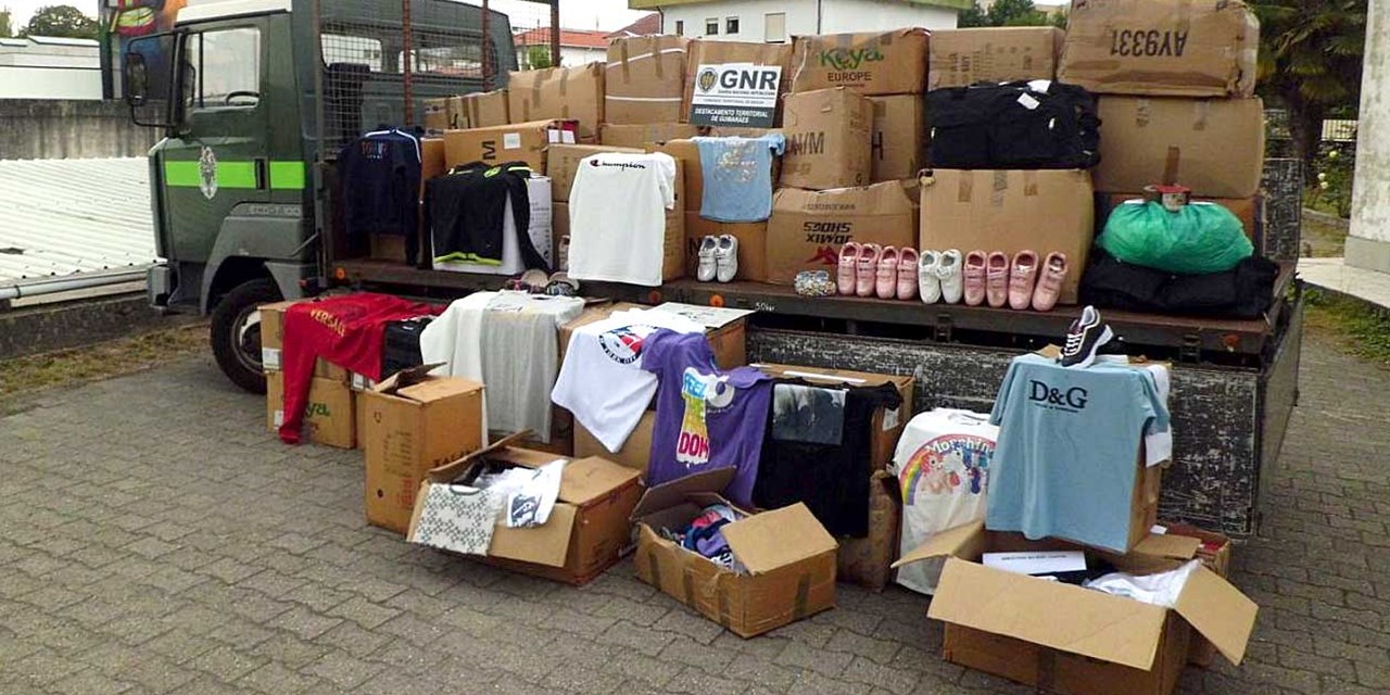 No total, foram apreendidas 2.650 peças de vestuário, 213 pares de calçado e 109 acessórios.