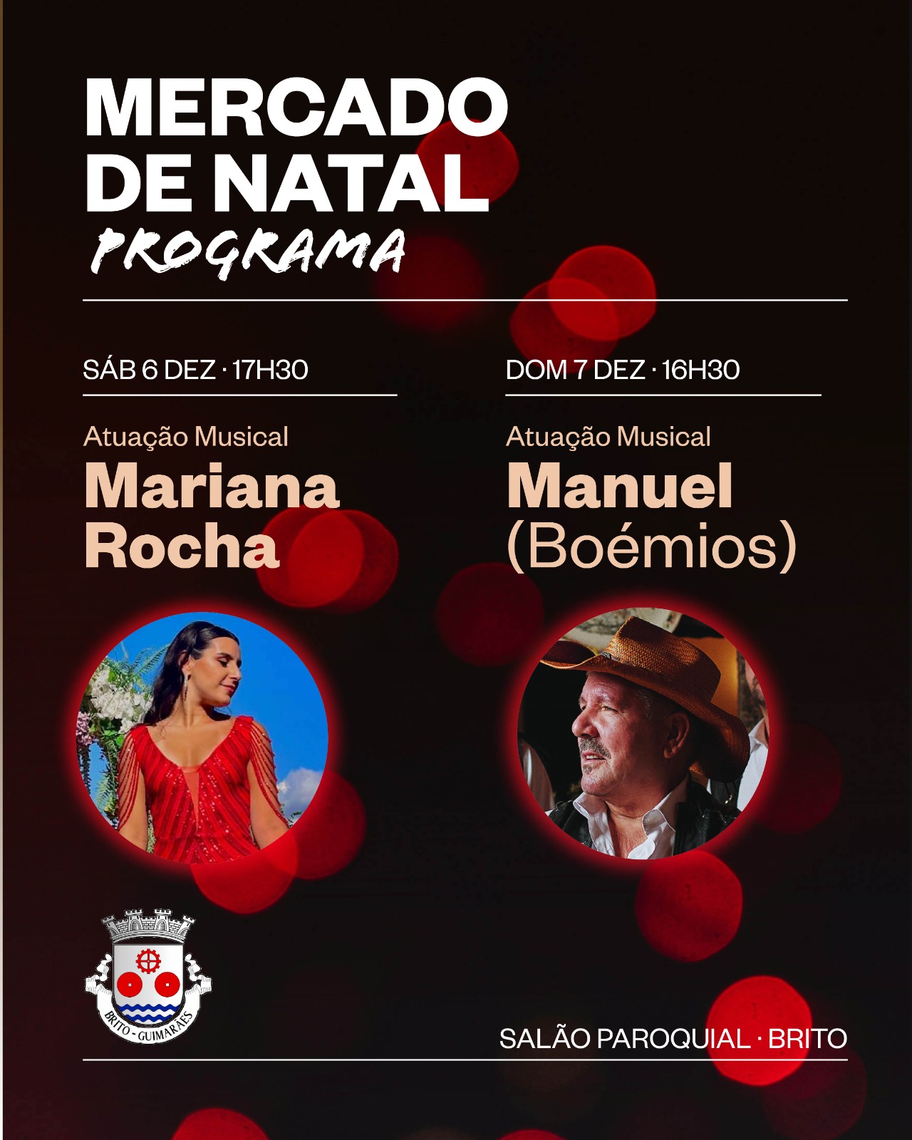 O Mercado de Natal, promovido pela Junta de Freguesia de Brito, vai desenrolar-se nos dias 6 e 7 de dezembro. No sábado, espera-se a chegada do Pai Natal ao som de Mariana Rocha, pelas 17h30. Já no domingo, sobe ao palco Manuel (Boémios), às 16h30.