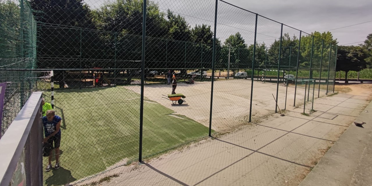 Novo relvado em instalação no campo de futebol do Parque de Lazer de Barco