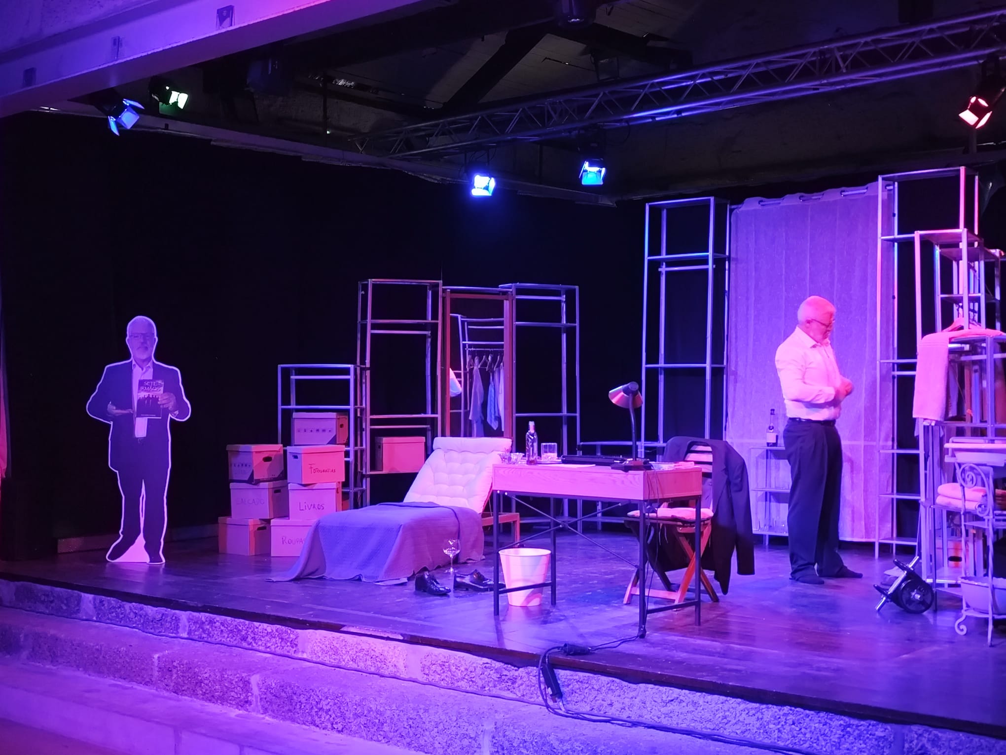 Destinado à prática cultural e associativa desde 2012, a sala dos Espaços Criativos escurece para assistir ao processo de autodestruição de Dinis Castro e Mendonça, personagem que, por uma hora, encarna a pele de um escritor que projeta nas mulheres da sua vida os seus infortúnios e que traça, enquanto olha o próprio espelho ou a fotografia de quando foi distinguido pelo seu livro mais vendido, a visão de um homem vitorioso, parte realidade, parte fantasias próprias de quem evidencia atributos narcisistas. Envolto em ideias preconcebidas sobre o que significa ser-se homem, marido, pai ou irmão, Dinis atormenta-se a si mesmo e quem o rodeia até chegar a uma experiência-limite que o coloca no trilho da redenção… ou não.