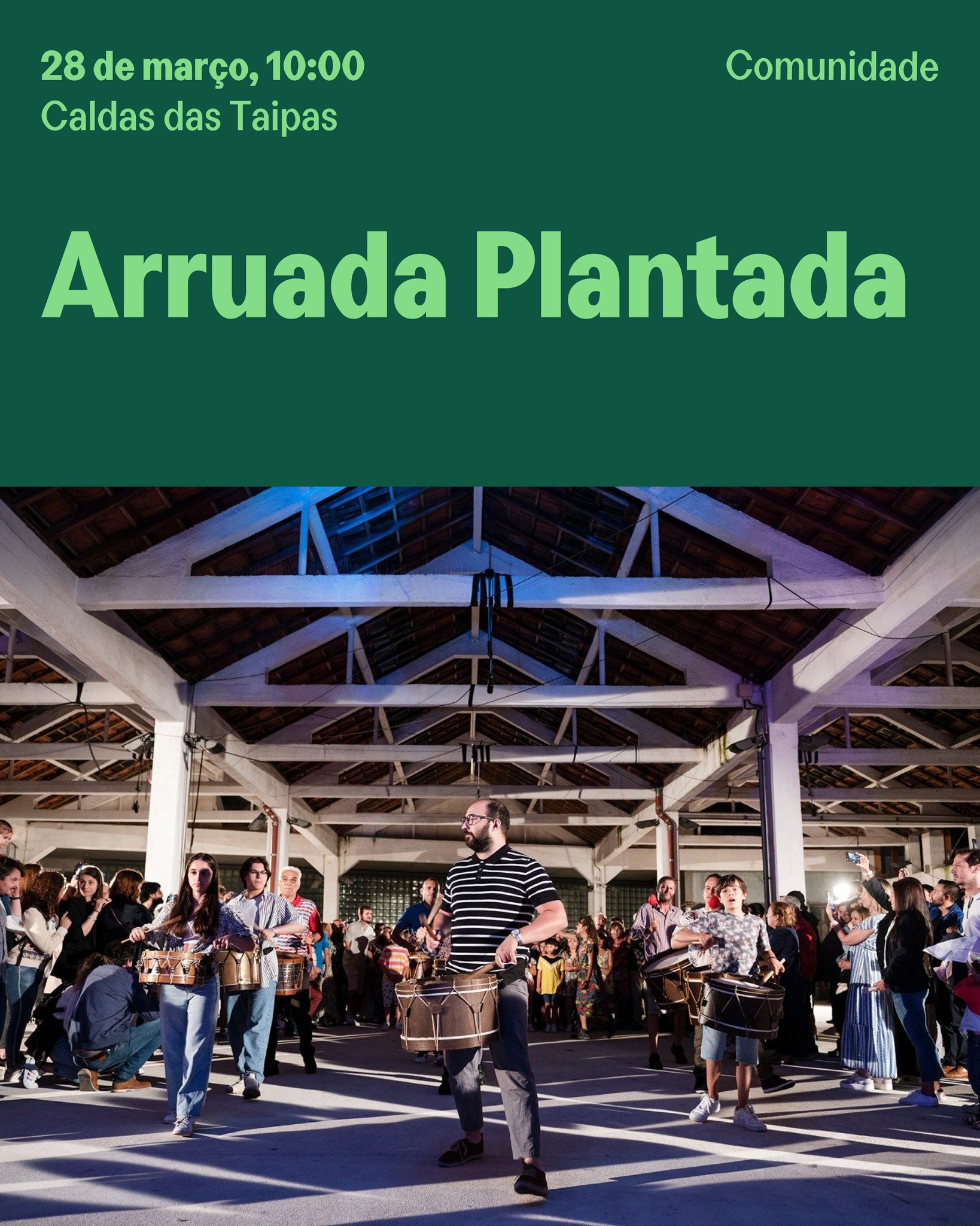 A “Arruada Plantada” desafia a população a juntar-se na caminhada ao ritmo de sons vibrantes da percussão que cruzam com a energia da comunidade. Ao longo do percurso, haverá também momentos simbólicos de plantação, celebrando a ligação entre cultura, ambiente e sustentabilidade coletiva.