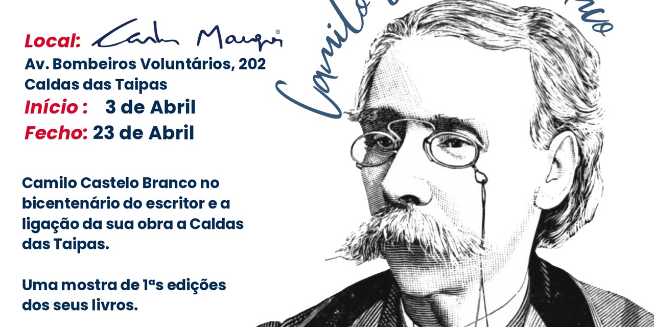 No âmbito do bicentenário de Camilo Castelo Branco, as Taipas acolhe, até dia 23 de abril, uma mostra com as primeiras edições dos livros de Camilo Castelo Branco, designadamente das obras em que o escritor descreve as Caldas das Taipas, como em “Memórias do Cárcere”, “A Engeitada”, “Doze Casamentos Felizes”, “A Viúva do Enforcado”, “Maria da Fonte”, “Bom Jesus do Monte” e no “”Obolo às Creanças”.