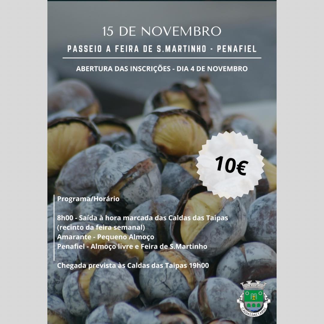As Caldas das Taipas vão celebrar o São Martinho com um passeio à Feira de S. Martinho, em Penafiel, no dia 15 de novembro, organizado pela junta de freguesia.