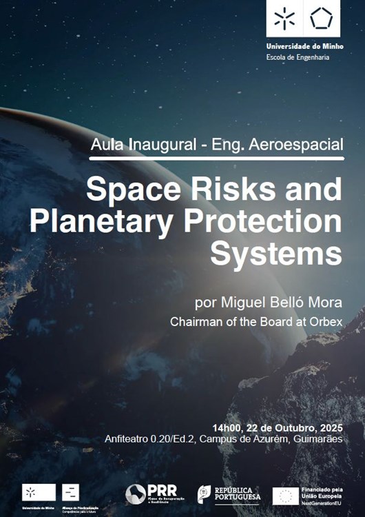 A sessão decorre esta quarta-feira, dia 22 de outubro, às 14h00, no auditório 0.20, no edifício 2 do campus de Azurém, em Guimarães, e tem entrada livre. O tema da conferência será "Riscos espaciais e sistemas de proteção planetária", abordando os desafios e estratégias de mitigação de ameaças provenientes do espaço.